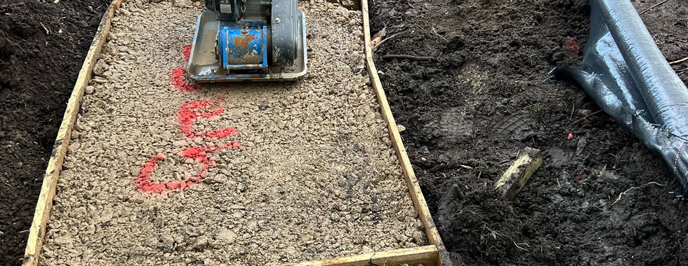 Finally, the nursery wanted to create another access route to an otherwise unused area, rather than installing a standard pathway we wanted to incorporate some educational elements whilst maintaining a natural theme, this is why we decided to make it a sensory pathway by designing the path to have sections where we would put in either artificial grass, charcoal blocks, green and brown mulch or buff UniPave surfacing. In order to start this project, we had to excavate the desired location of the pathway and then put in the stairs to connect the slightly elevated part of the pathway. The next step of this project was to introduce the treated timber edges that would outline both the pathway and the individual sections along it. In pursuance of creating a stable, solid base the team next installed a layer of compacted stone, this then meant they were able put all the different sections on top which completed the sensory pathway.